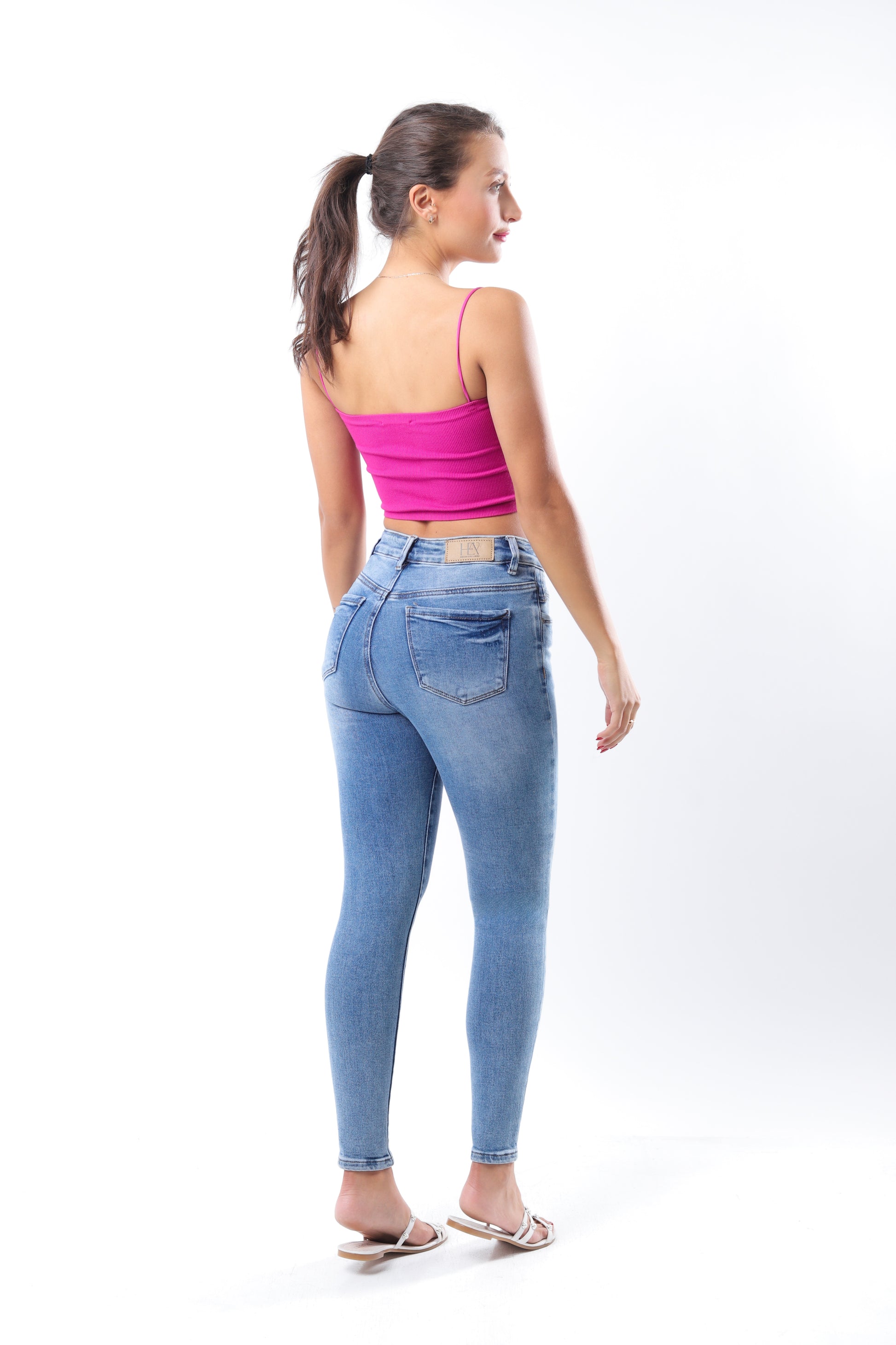 Los jeans skinny se adaptan perfectamente a la silueta, desde la cadera hasta el tobillo. Son ideales para quienes buscan un look moderno, estilizado y fácil de combinar con cualquier tipo de calzado.